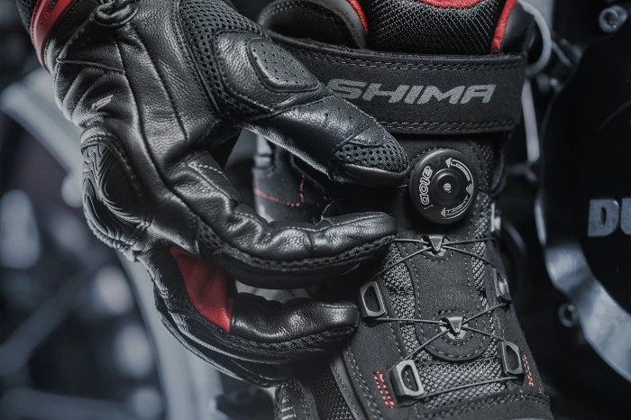 wygodne buty , uniwersalne , bo po zejsciu z motocykla spokojnie można w nich chodzić , brak sznurówek oznacza bezpieczeństwo i wygodę bo dociąga się je pokrętłem
